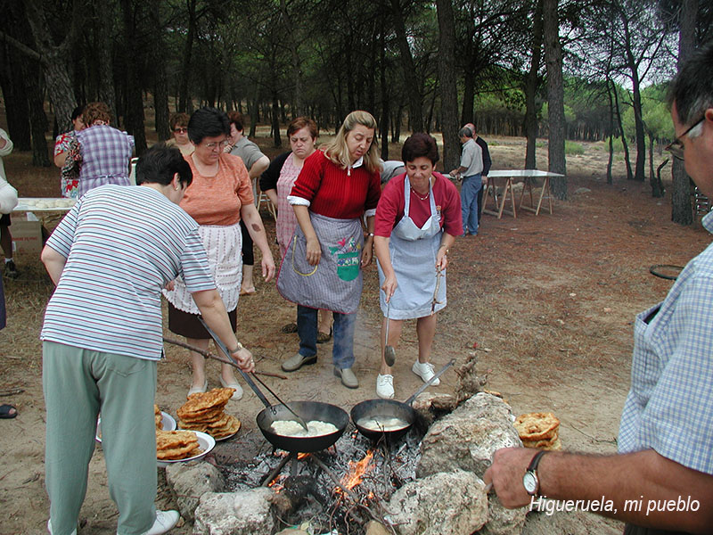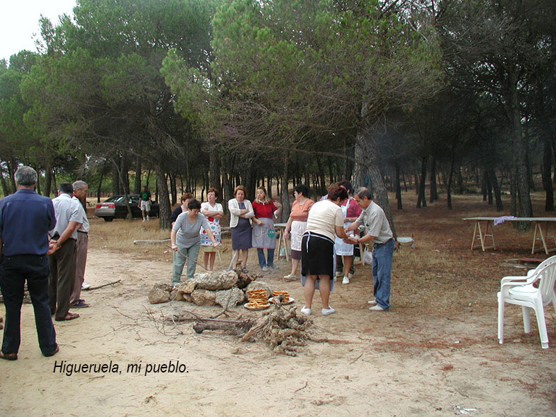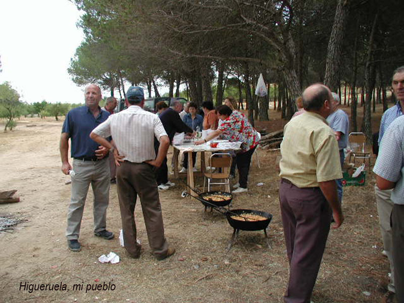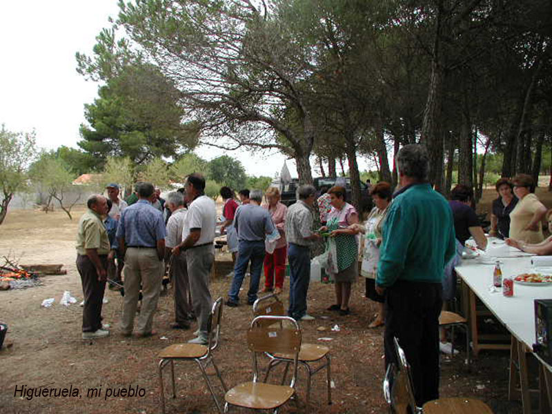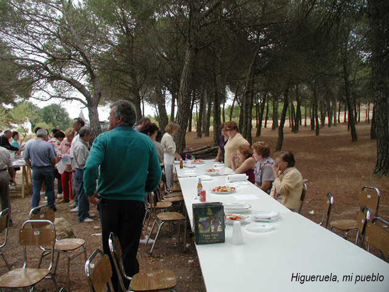 Año 1999. Comida en el campo Comisión 1997. Dos años después de salir como comisionistas en las fiestas de mayo, los quintos de 1949, 1950 y sus parejas, se juntaron de nuevo en los pinos de los Pajaritos, para celebrar un dia de hermandad. |