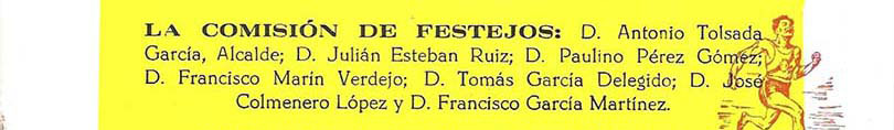 Vocales:Cosme López Navalón, Aurelio Abellán Zornoza, Bernabé Mancebo González, Liberato Valera Tomás, José Cano González, Martín González Martínez, Antonio Navalón del Rey.