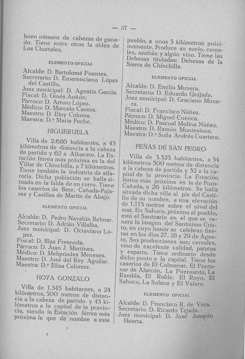 Alcalde: | Don Pedro Navalón Belmar. |