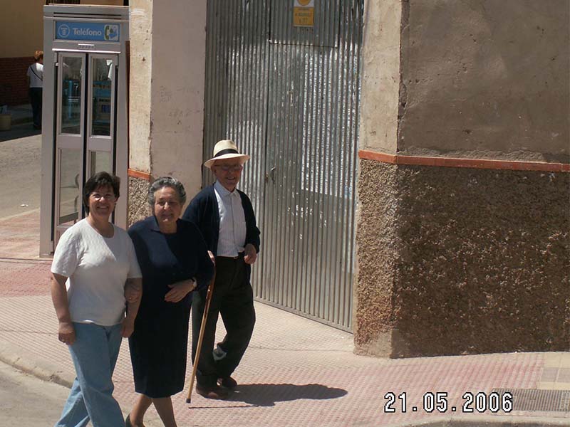 Año 2006.Juan, María y su hija Jose, junto a la cabina telefónica.