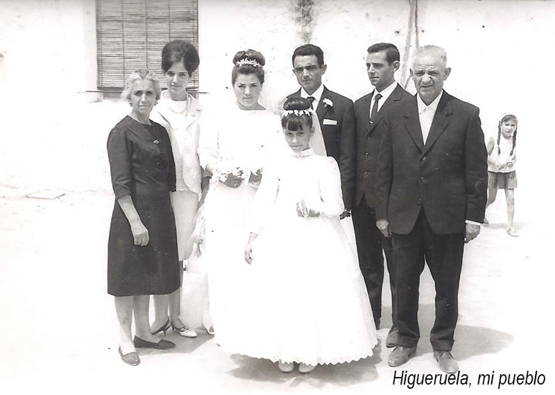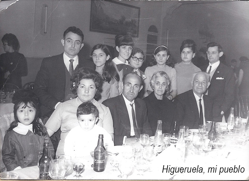 Es la boda de mi hermano el mayor, Maximino, la novia es la 'Catalina de buenastardes' donde recogiste las fotos, en la calle Calvario número 6 de Higueruela. Estamos los cuatro hermanos, la niña de comunión soy yo. La boda fue en Higueruela en el 7 de agosto de 1965, y la niña que se ve detrás es mi prima. También nos da su versión de la tercera y última fotografía: "Hola: te comento en esta última estamos mis padres, los cuatro hermanos. Maximino, Juan, Agustina e Isabel, las mujeres de los dos mayores, Catalina Gómez Peral, esposa de Maximino y Ana María Fernández Sánches esposa de Juan, mi sobrino el mayor y el hermano de mi madre que a lo mejor lo conociste era Antonio el de Maximino y dos de sus hijas. |