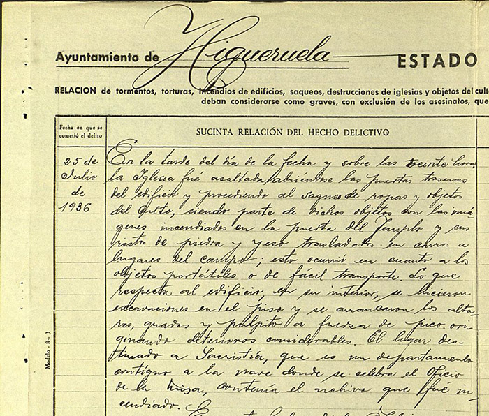 NATIVIDAD 'De La Tana' o 'NATIVIDAD La Tana'. Relato de Alfonso Tortosa Minguez David Caballero parece que aunque no te conozco personalmente compartimos bisabuela. Soy nieto de Ascensión Minguez Mancebo, hermana de Sebastián 'el Cuadrao'. Nuestra bisabuela se llamaba Natividad Mancebo y le decían 'Natividad de la Tana'. La historia de Santa Quiteria la conozco desde siempre perfectamente con absolutamente todos los datos, aunque eso pasó en la guerra y allí se queda. Lo que pasa es que aquí de vez en cuando sale a relucir el cuento de una mujer que escondió a la virgen y a los años apareció y claro, ya cansa un poco oír tantas tonterías. 25 DE JULIO 1936 A grandes rasgos, cuando llegaron de Almansa las milicias republicanas a saquear y quemar la iglesia al principio de la guerra, nuestra bisabuela Natividad y su hija Ascensión fueron a por ella para que no la quemasen, las encañonaron con los fusiles para matarlas y un miliciano dijo que si habían dejado en Almansa salvar a la virgen de Belén, aquí también podían salvar a Santa Quiteria. Y así se la llevaron a su casa, jamás estuvo ni escondida ni perdida ni nada parecido, todo el pueblo sabía dónde estaba y allí iban todo el que quería a rezarle, no estaba muy lejos, estuvo casi toda la guerra en casa de nuestra bisabuela Natividad Mancebo, justo enfrente de la iglesia, actualmente plaza iglesia n.1, Pero cuando Higueruela pasó a ser Nacional, claro, ya no estaba bien visto que Santa Quiteria estuviese en casa de una rojilla y fueron a por ella, Natividad dijo que hasta que la guerra no acabase y arreglasen la iglesia no la entregaba y claro se la llevaron al ayuntamiento, allí recibió su paliza y una patada en el culo en lo alto de la escalera que le hizo bajarlas rodando y la metieron en la cárcel, poco tiempo, porque un hombre que allí estaba la sacó y les dijo a los demás que si no les daba verguenza pegarle a una mujer de 60 años. Cuando Natividad llegó a su casa se encontró un agujero en la pared hecho a pico y por ahí se llevaron a Santa Quiteria. Como bien dices, su nombre no aparece en ningún sitio, ni ha sido reconocido su mérito por nadie, tal vez si hubiese sido otra persona quien la hubiese salvado si que tendría calle, plaza y monumento. Al igual que la Tierra es redonda y el Sol sale todos los días, verdad solo hay una y es la que acabo de contar, Si en Higueruela se puede sacar en procesión a Santa Quiteria es gracias a Natividad Mancebo y su hija Ascensión Minguez Mancebo que la salvaron del fuego NOTA; Relato 'oficial' de los hechos ocurridos el dia 25 de julio de 1936, donde evitan comentar este enfrentamiento de Natividad y su hija Ascensión: